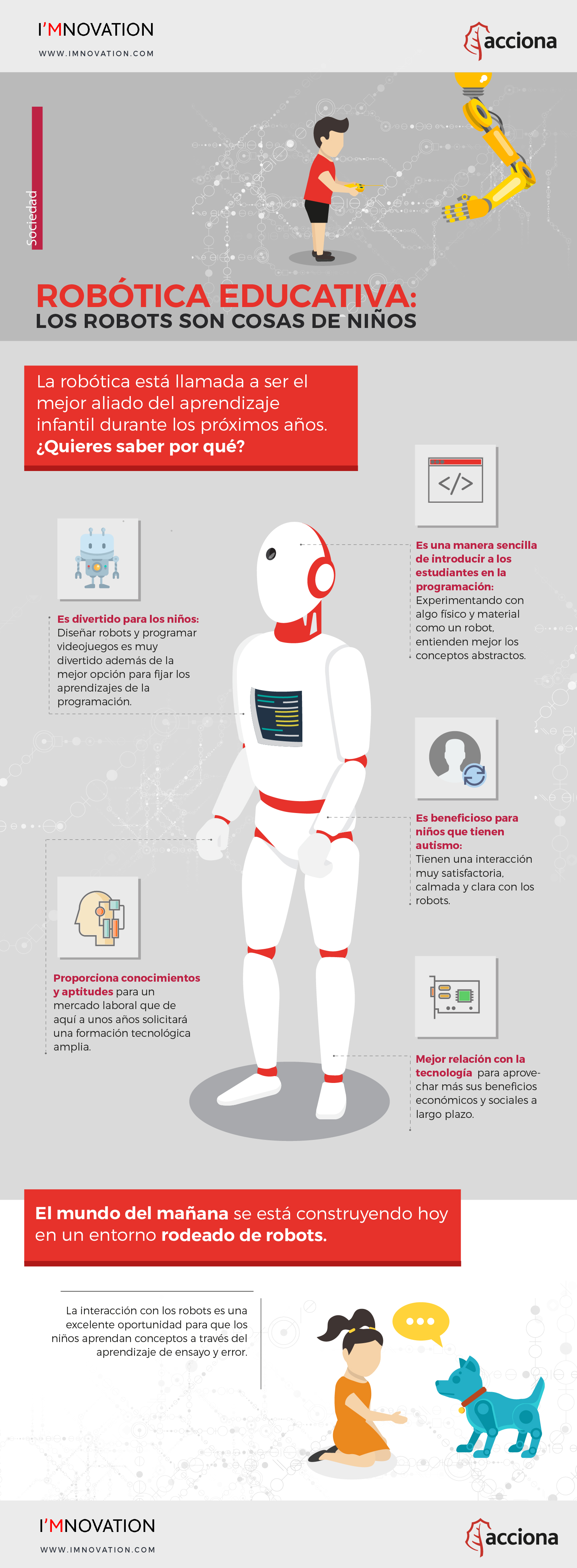 - Desmitifica una tecnología compleja: por último, muchos medios de comunicación y una parte de la sociedad todavía mira con recelo a la investigación en robótica porque desconfían de sus beneficios a largo plazo. Inculcando desde pequeños un interés por este campo científico será más sencillo obtener un beneficio económico y social en el futuro.